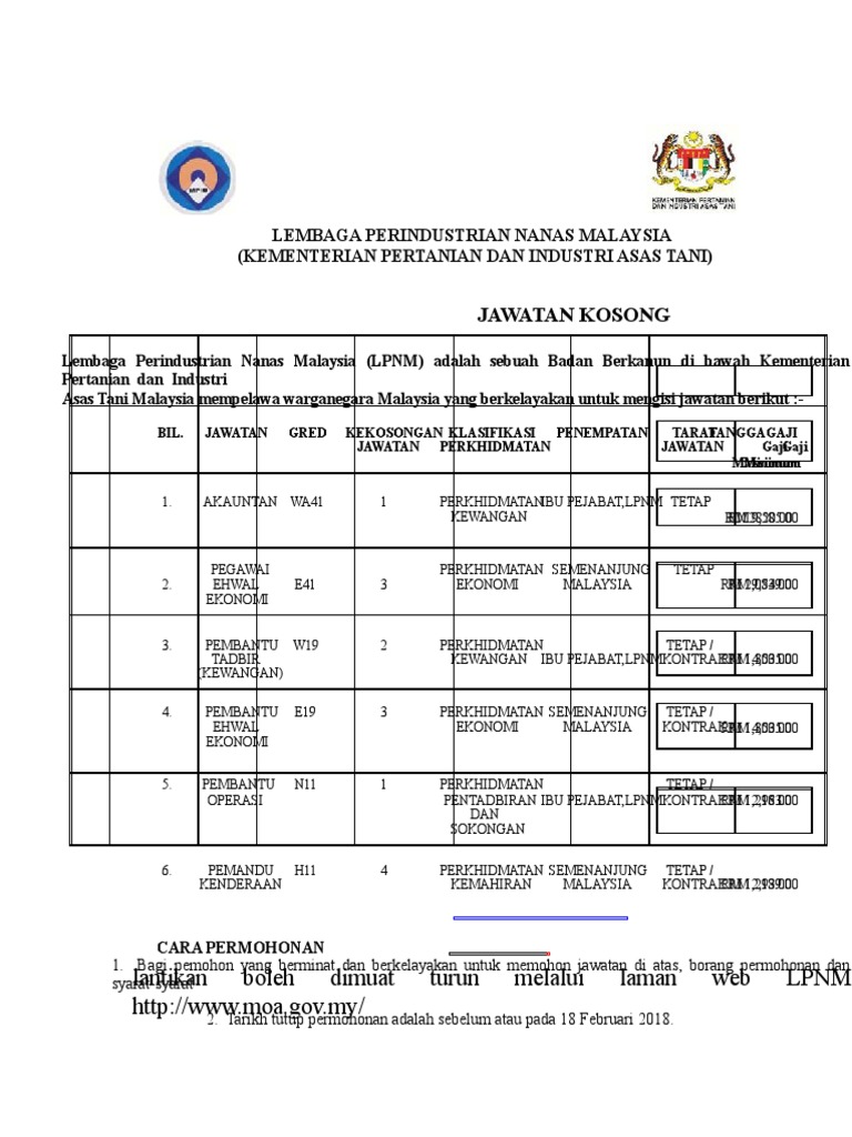 Sila tulis nama jawatan yang dipohon pada bahagian atas di sebelah kiri sampul surat. Jawatan kosong lembaga perindustrian nanas malaysia lpnm. Tiada makluman bersurat akan dikeluarkan oleh lpnm. Berikut merupakan maklumat iklan kerja kosong yang ditawarkan oleh majikan terlibat.