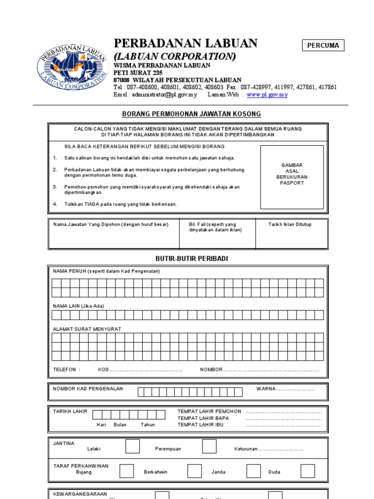Borang Permohonan Kerja Perbadanan Labuan