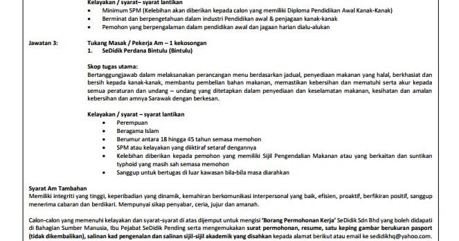 Iklan kerja kosong kerajaan jawatan kosong terkini kerajaan spa swasta. Iklan kerja kosong kerajaan jawatan kosong terkini kerajaan spa swasta. Borang permohonan pembantu pendidik taska permata gred s19. Maklumat kekosongan ini adalah seperti yang diiklankan.