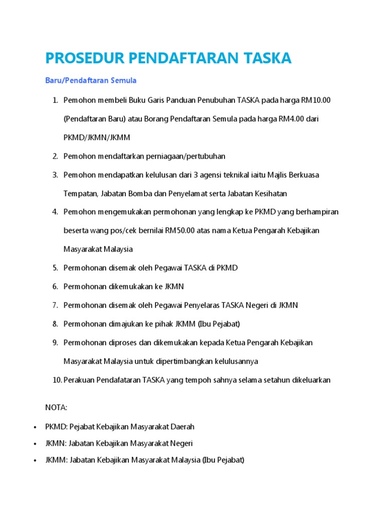 Permohonan ini akan terbatal dengan sendirinya sekiranya butiran yang diberikan tidak lengkap atau tidak benar. Melampirkan sijil pendaftaran perniagaan ssm pertubuhan ros kecuali taska di rumah 3. Satu 1 salinan surat rujukan daripada jabatan berkaitan. Pendaftaran kanak kanak taska permata kemas ini akan bermula dari bulan jun hingga oktober 2016.