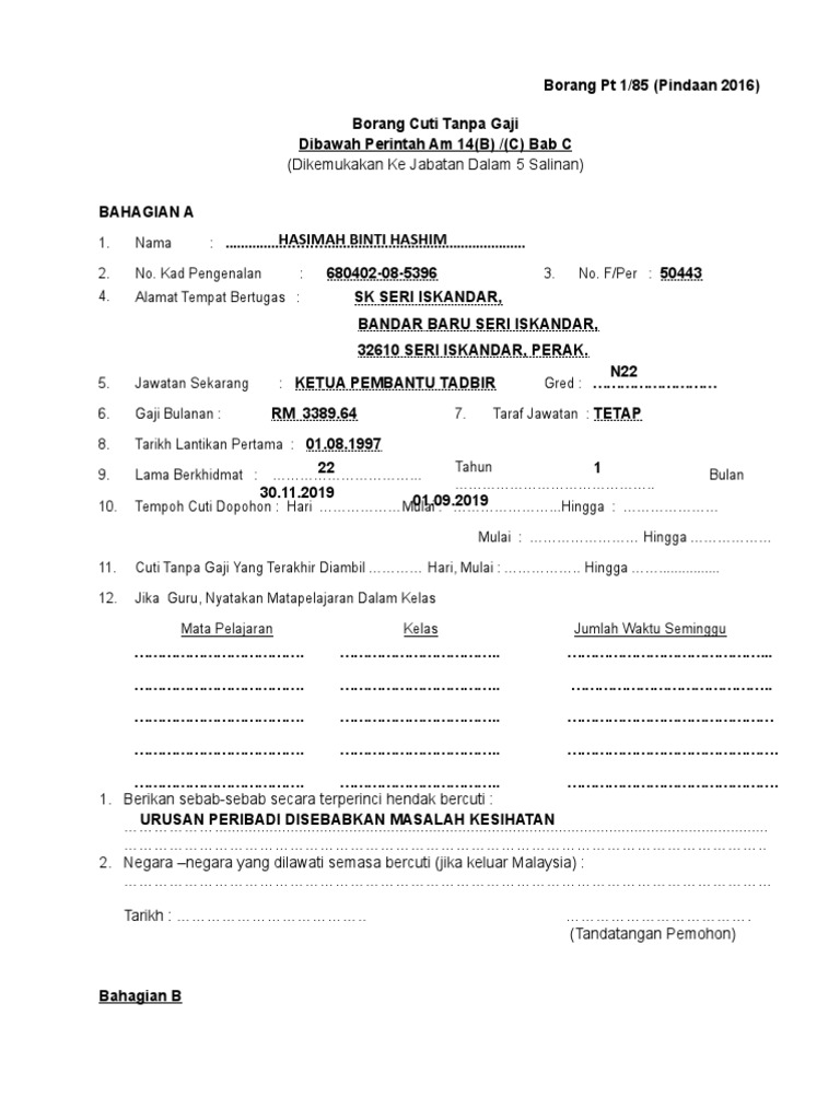 Tarikh akhir cuti tarikh kembali bertugas saya dengan ini mematuhi segala peraturan yang ditetapkan di perenggan 6 i ii dan perenggan 10 surat pekeliling am bilangan 3 tahun 2012. Sila rujuk jadual kadar honorarium elaun serta kaedah lantikan akademik dalam dan luar negara sila sediakan lampiran jika ruang tidak mencukupi potong yang tidak berkenaan. Tarikh nama penuh tandatangan sila isikan perenggan 2 jika mengubah tarikh negara atau perenggan 3 jika membatalkan urusan ke luar negara. Pindaan 2012 1 borang pencalonan lantikan ahli akademik dalam luar negara.