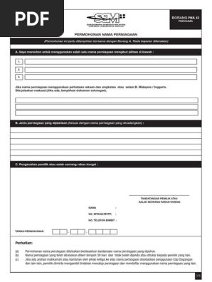Saya memohon menggunakan salah satu nama perniagaan mengikut pilihan di bawah. Percuma permohonan ini perlu dilampirkan bersama dengan borang a. Tiada bayaran dikenakan perhatian. Nama tred borang permohonan kelulusan nama perniagaan borang pna 42 mesti dilengkapkan.