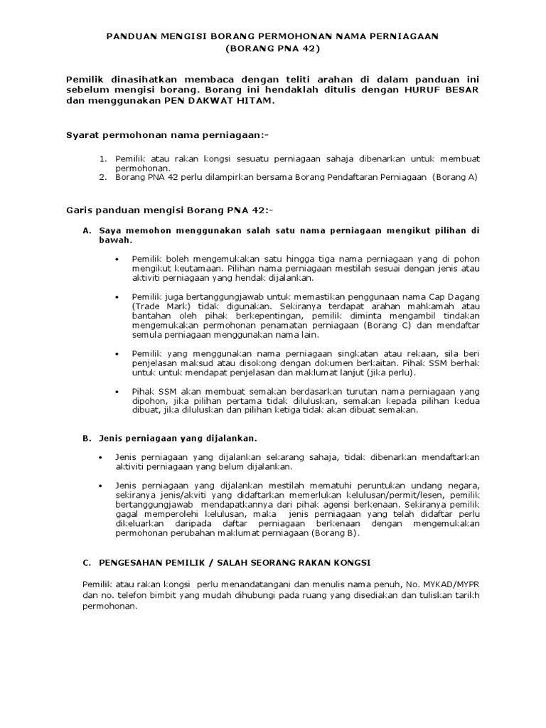B nama perniagaan yang telah diluluskan diberi tempoh 30 hari dan tidak boleh dipinda atau ditukar kepada pemilik yang lain. Tandai sebagai konten tidak pantas. Borang pna 42 percuma permohonan ini perlu dilampirkan bersama dengan borang a. Simpan simpan borang pna 42 untuk nanti.