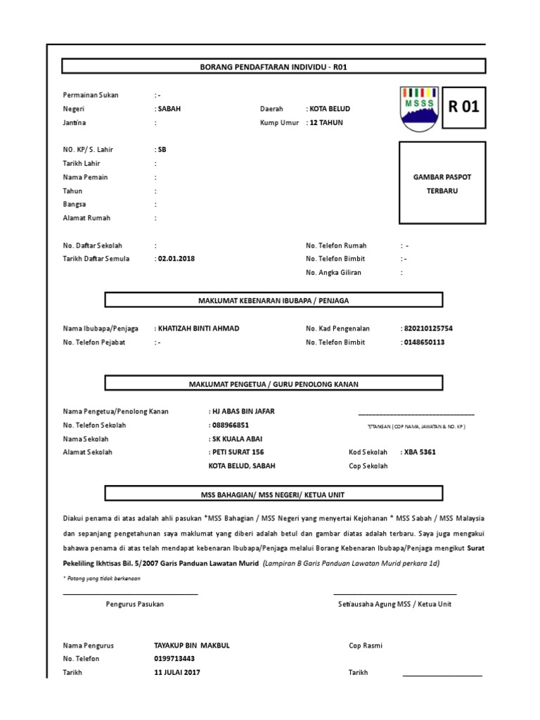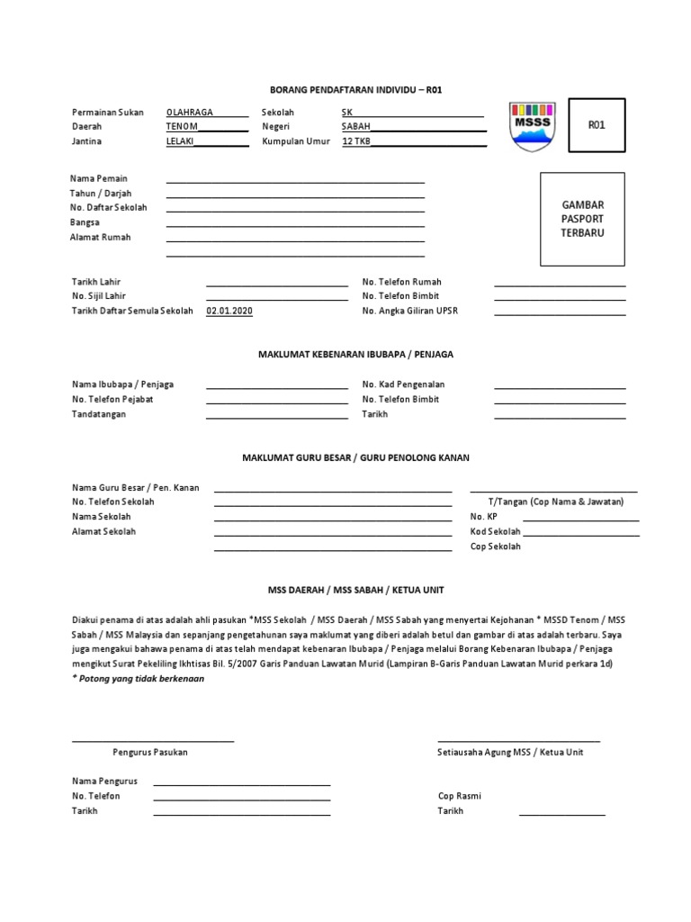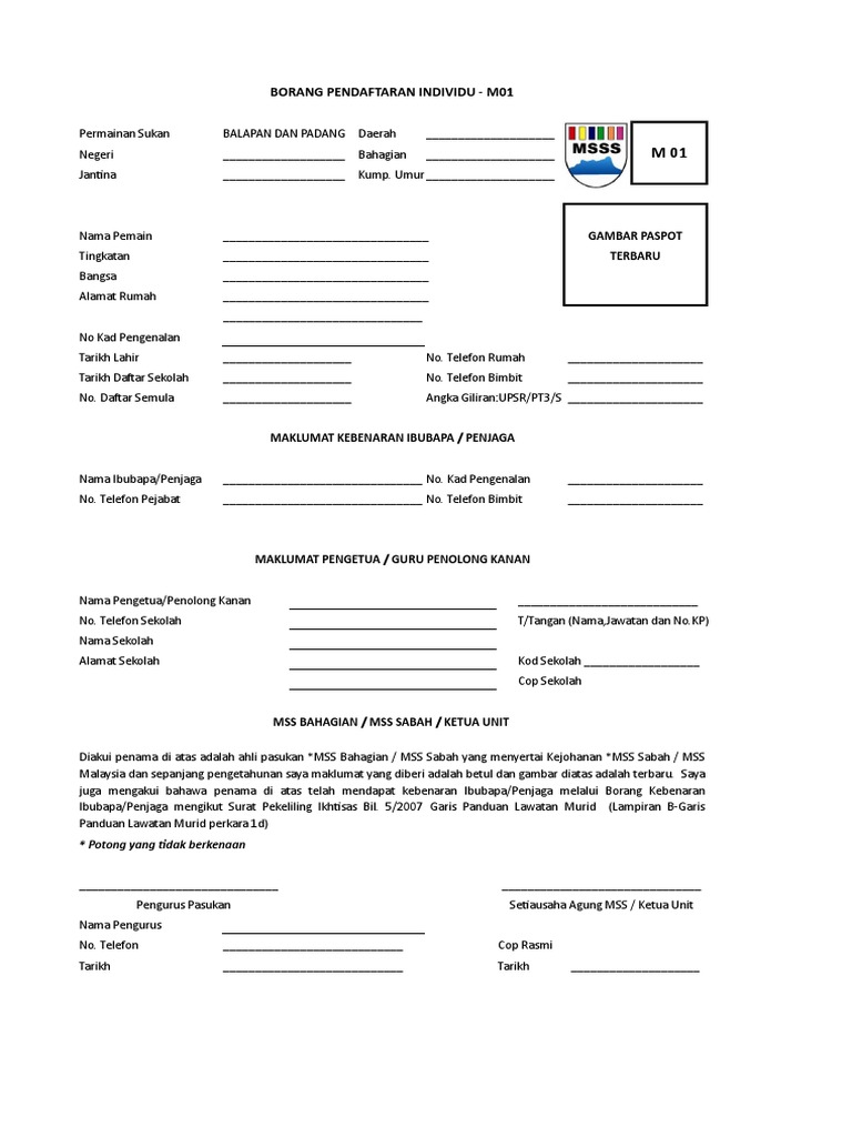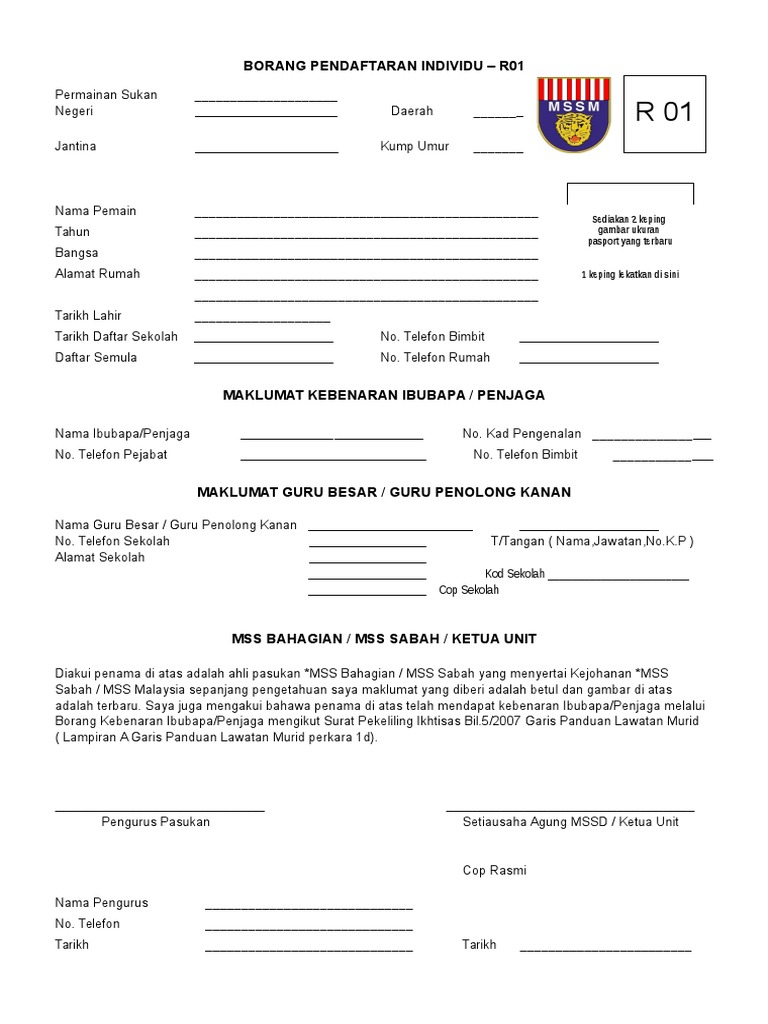 Borang r01 m01 surat kebenaran posted by syed muzni at 8 14 pm. Jun 25 jun 2012 isnin hari gawai 1 2 jun 2012. Mss negeri ini yang menyertai kejohanan majlis sukan sekolah malaysia dan sepanjang pengetahuan saya semua maklumat yang diberi adalah betul dan gambar di atas adalah terbaharu dan benar.