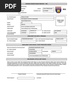 Borang pendaftaran individu sekolah rendah r01 borang pendaftaran pasukan sekolah rendah pendaftaran pasukan sekolah rendah borang pendaftaran individu sekolah menengah borang pendaftaran pasukan. Borang pendaftaran m01 m02 r01 dan r02 untuk guru. Huraian sukatan pelajaran pendidikan kesihatan julai 2009 3 jun 2009 4 tentang saya. Borang r01 dan r02 46 17 borang m01 dan m02 48 18 garis panduan pengelolaan pertandingan kebangsaan dan antarabangsa 50 19 tugas dan tanggungjawab ptps mssm 55 20.