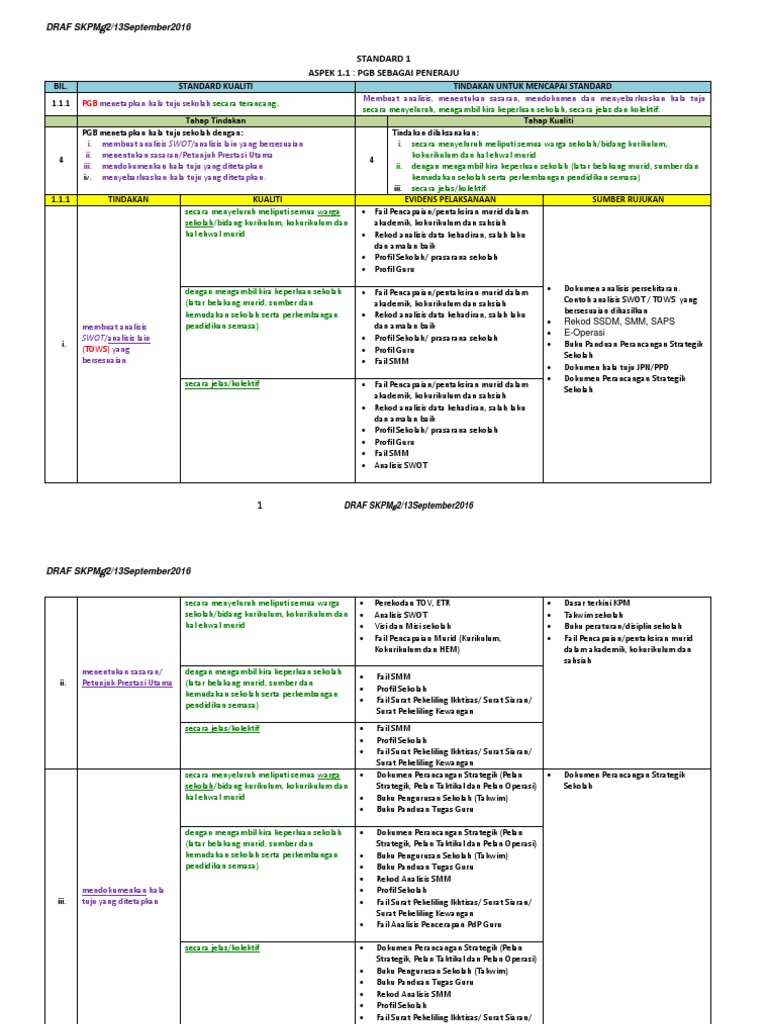 Beberapa penambahbaikan dan peningkatan kualiti telah dilakukan melalui aspek kepimpinan pengurusan organisasi pengurusan kurikulum kokurikulum dan hal ehwal murid pembelajaran dan pemudahcaraan dan kemenjadian murid. Dokumen ketetapan hem ini boleh meliputi semua bidang kerja yang melibatkan hem ataupun buku pengurusan hem dalam setiap sekolah. Standard kualiti stak tindakan untuk mencapai standard tums 3 2 1 1. Standard kualiti pendidikan malaysia gelombang 2 atau lebih dikenali dengan skpmg2 adalah merupakan penggubalan semula skpm 2010.