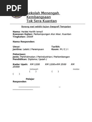 Borang soal selidik geografi pdf. Contoh borang soal selidik word contoh borang soal selidik kempen contoh borang soal selidik sejarah contoh borang soal selidik geografi contoh borang soal selidik teknologi contoh borang soal selidik pengajian am contoh borang soal selidik kepuasan kerja contoh borang soal selidik pencemaran udara contoh borang soal selidik etika kebersihan contoh borang soal selidik geografi pt3. Sila klik satu persatu gambar di bawah sekali ini untuk paparan yang lebih jelas. Borang soal selidik borang soal selidik ini dikemukakan untuk mendapatkan maklum balas dan menilai persepsi masyarakat melayu di daerah pengkalan hulu perak terhadap haiwan fasiq. Contoh borang tugasan 2015.