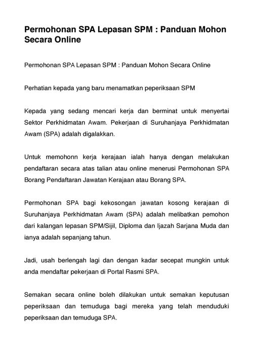 Sebarang pengemaskinian maklumat di spa8i sila hantar semula permohonan tersebut dengan klik butang hantar di menu pengakuan pemohon. Syarat terkini spa adalah dimaklumkan spa telah memutuskan bahawa a. Bagi calon yang layak surat panggilan temu duga dan ujian akan diberi. Berita baik buat pencari kerja di sektor perkhidmatan awam.