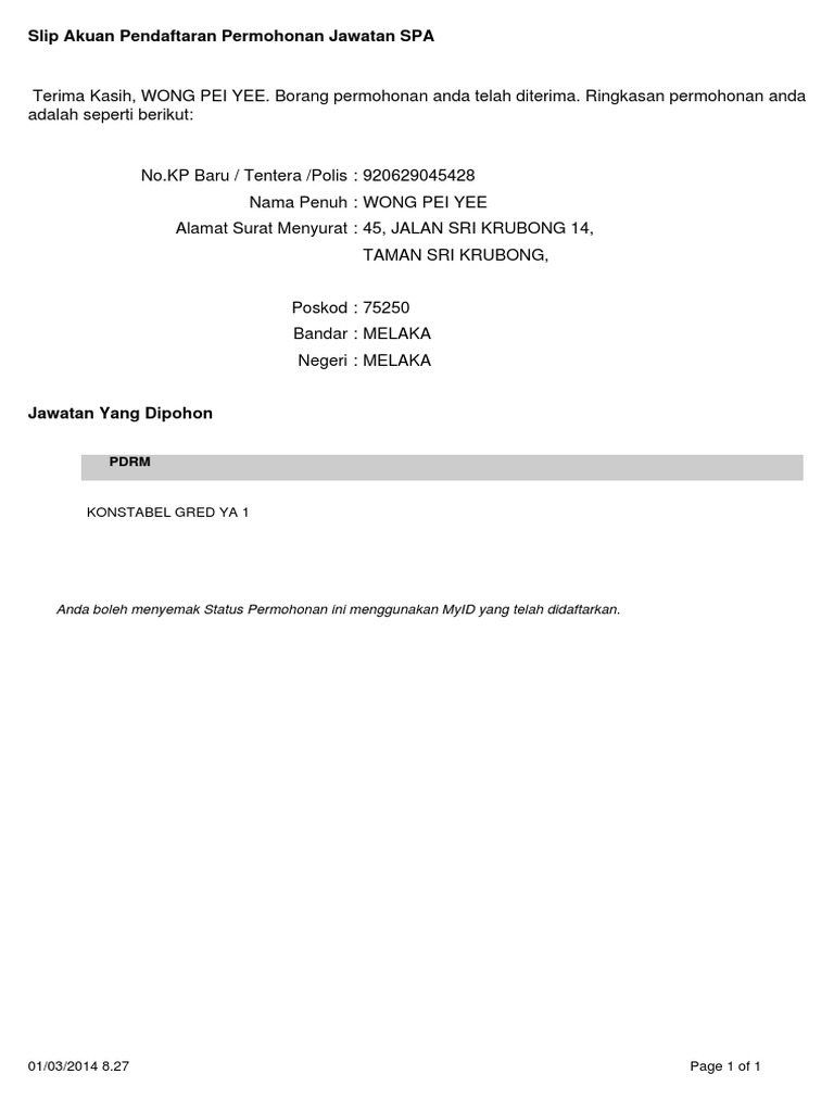 2 untuk mendaftar spa sila layari atau klik pada borang online spa8i server 1. Sebelum ini pemohon boleh memohon dengan membuat pendaftaran secara online di borang spa8i di portal rasmi suruhanjaya perkhidmatan awam spa yang telahpun dilaksanakan sejak 20 mac 2012. Pastikan borang sentiasa dibawa ketika anda melakukan perjalanan rentas negeri. Jawatan kosong suruhanjaya pasukan polis yang boleh dimohon di spa.