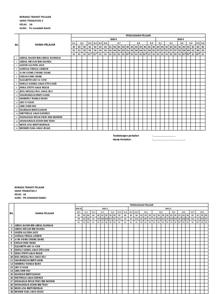 Borang Transit Pbd Sains Tingkatan 2