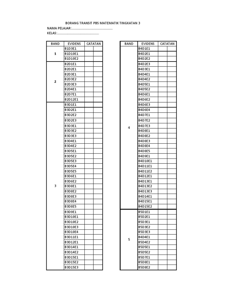 Borang transit pbs matematik tingkatan 3 2019. Borang transit bi individu t1 t3 roshidah mohd ghauth sk tmn selasih. Kssm ini akan bermula pada tahun 2017 untuk pelajar tingkatan satu 2018 bagi pelajar tingkatan 2 dan seterusnya sehingga 2021 bagi pelajar tingkatan 5. Muat turun download templat terkini pelaporan pentaksiran bilik darjah pbd kelas 2019 kssm semakan tingkatan 3. Enam tunjang kssm ialah komunikasi perkembangan fizikal dan estetika kemanusiaan ke te rampilan diri sains dan tek no logi serta kerohanian sikap dan nilai.