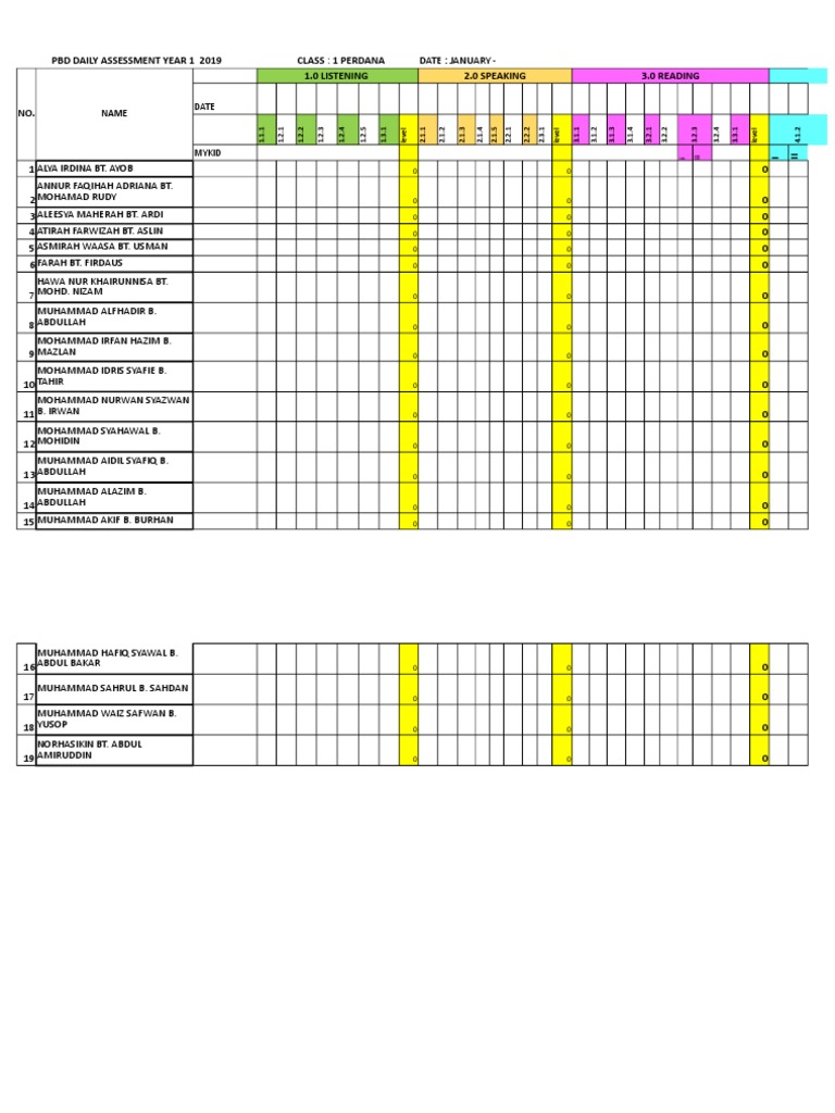 Pencapaian murid ini hendaklah disimpan sehingga murid memasuki sekolah menengah. Koleksi terkini templat pelaporan pbd kssr tahun 3 pentaksiran bilik darjah semakan tahun 2019. Ini merupakan contoh borang pentaksiran pendidikan jasmani tahun 1 borang ini perlu diisi dan dikepilkan di dalam fail murid bermakna 1 borang 1 murid. Semua template pelaporan bagi setiap mata pelajaran telah digabungkan dalam satu template sahaja.