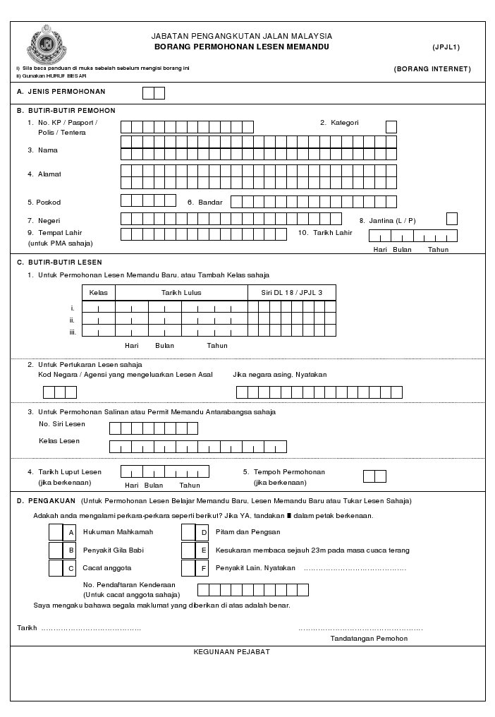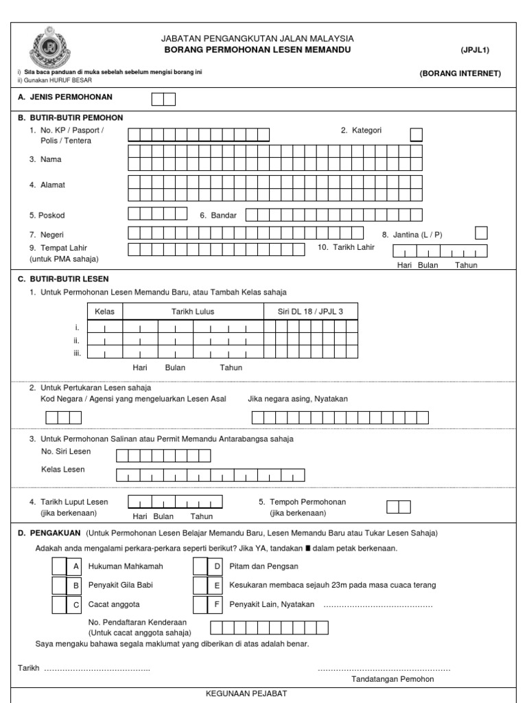 Mendapatkan borang permohonan dan membuat pendaftaran di kaunter kaunter pendaftaran lesen di. Borang permohonan cara daftar oku dengan isi borang bppoku pindaan untuk terima bantuan rm300. Untuk makluman pemberian lesen motor percuma ini hanya terhad untuk 25 000 orang sahaja. Borang permohonan lesen memandu jpj l1 borang pemberitahuan pindaan butir butir lesen memandu jpj l7 borang permohonan lesen vokasional jpj l8a borang permohonan lesen vokasional jpj l8 lampiran a1 borang permohonan ujian undang undang jalan raya bahagian i lisan agi calon buta huruf.