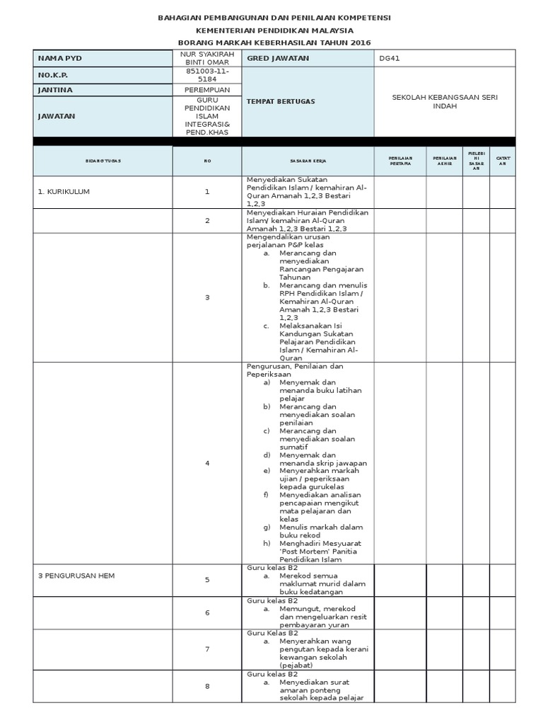 Contoh keberhasilan guru pendidikan islam. Contoh borang keberhasilan guru penolong akademik biasa terkini guru dan pegawai perkhidmatan pendidikan contoh borang keberhasilan guru penolong akademik biasa fail penilaian bersepadu pegawai perkhidmatan pendidikan pbppp seperti yang sedia maklum mulai 2016. Contoh keberhasilan guru pendidikan islam. Contoh borang keberhasilan guru penolong akademik biasa terkini guru dan pegawai perkhidmatan pendidikan perlu menyediakan borang keberhasilan pada setiap tahun di mana borang ini perlu disediakan di awal tahun persekolahan.
