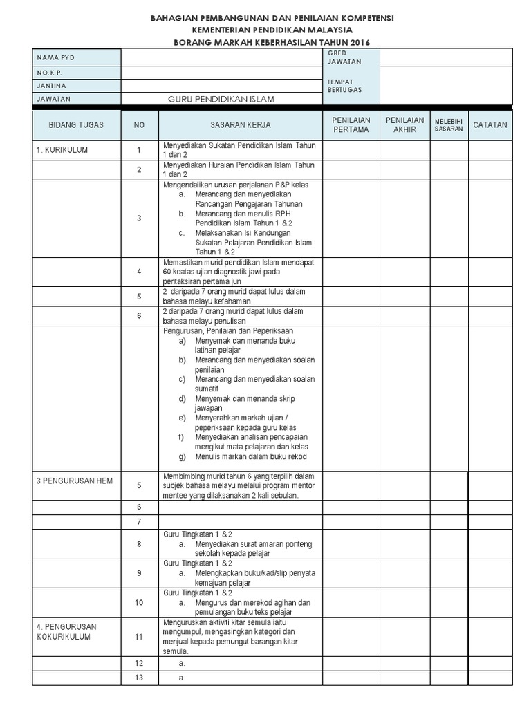4966 hits berikut kami kongsikan borang keberhasilan guru pendidikan islam bagi tujuan penilaian bersepadu pegawai perkhidmatan pendidikan 2016 panduan panduan untuk guru guru penolong kanan guru besar dan pengetua guru akademik biasa boleh juga dipe.