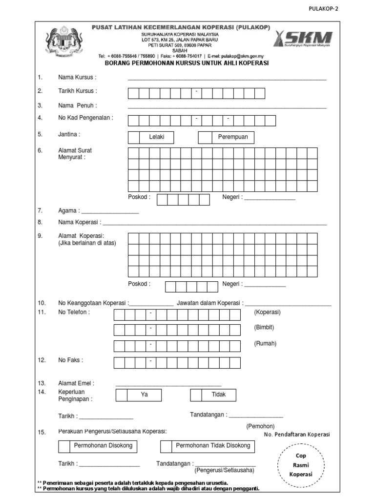 Suruhanjaya koperasi malaysia skm adalah satu entiti yang telah diperbadankan pada 1 januari 2008. Koperasi polis diraja malaysia berhad. Borang permohonan menjadi anggota member application form pemberhentian ahli koperasi sejati berhad dan pemberhentian potongan gaji yuran keahlian di perkhidmatan biro angkasa member resignation. Skm sebelumnya dikenali sebagai jabatan pembangunan koperasi malaysia jpk.