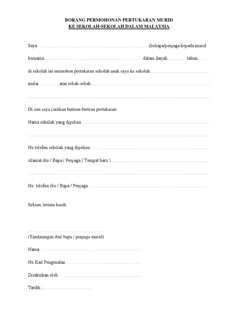 Contoh borang pendaftaran pelajar sekolah. Contoh surat permohonan bantuan beasiswa2. Tuan memohon mengadakan lawatan sambil belajar merujuk kepada perkara di atas guru kelas 5 teknik perdagangan sekolah menengah teknik kuala klawang ingin mengadakan lawatan sambil belajar ke cameron highland. Ibu atau bapa perlu datang ke sekolah untuk tandatangan kedua dua salinan borang keluar di depan pentadbir sekolah atau guru disiplin sekolah. Contoh surat permohonan bantuan surat permohonan bantuan umumnya dibuat ketika tidak bisa memenuhi kebutuhan secara mandiri.