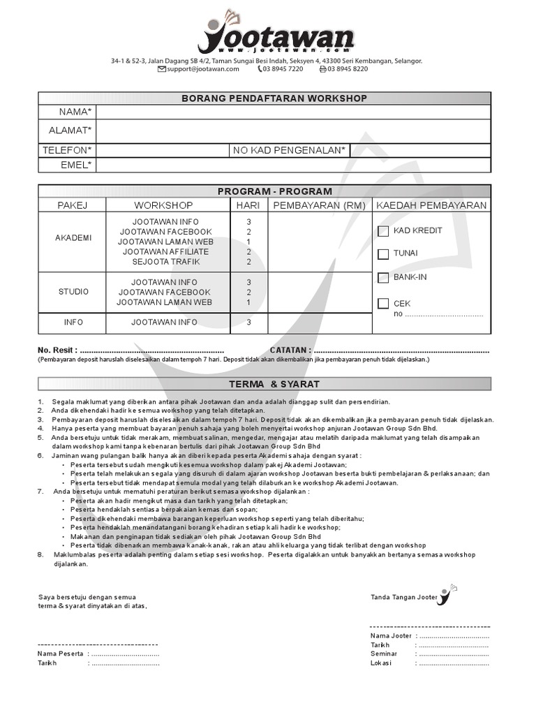 Speak with confidence seat royal telah sold out. Dede irma spdi guru sman 2 meda n pend agama islam 2. Borang permohonan kursus seminar pelan latihan training road map trm 2014 pegawai kumpulan pelaksana perkhidmatan gunasama persekutuan. Online registration forms make it easy to plan your next event such as conferences workshops or classes.