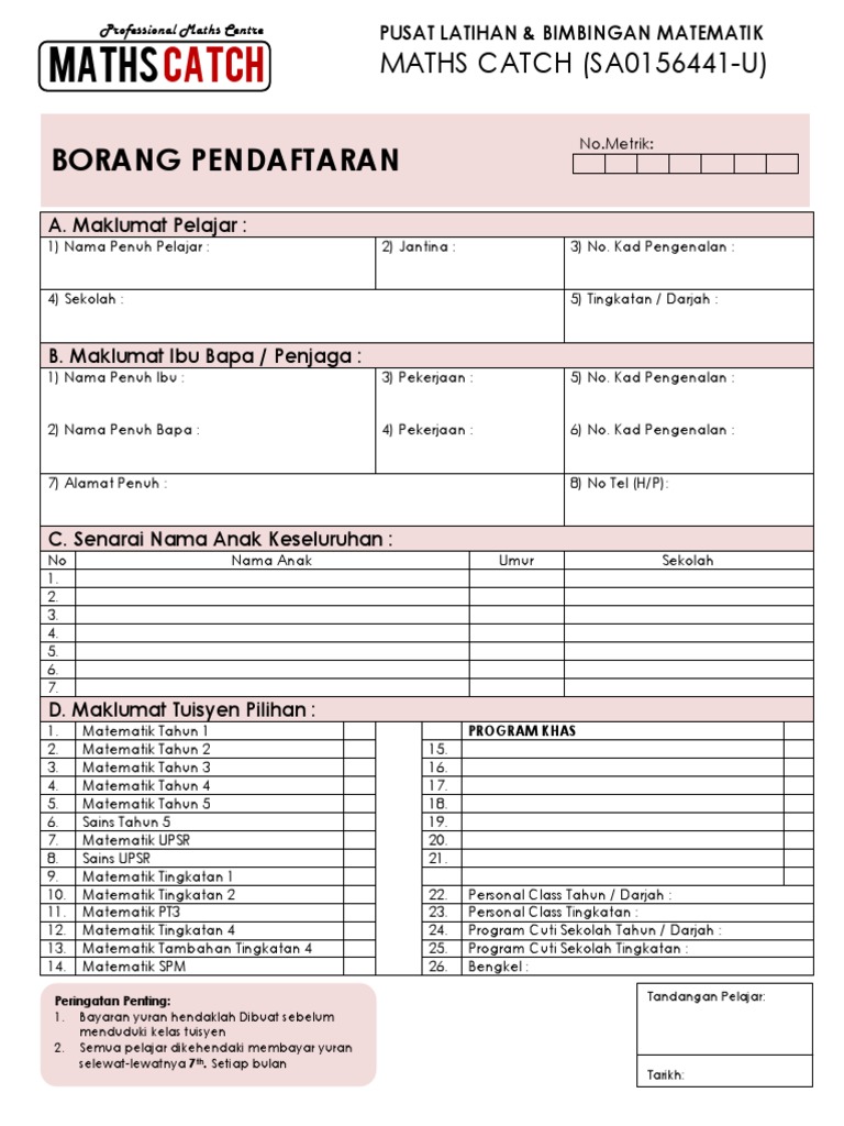 Contoh Borang Pendaftaran Program Cuti Sekolah