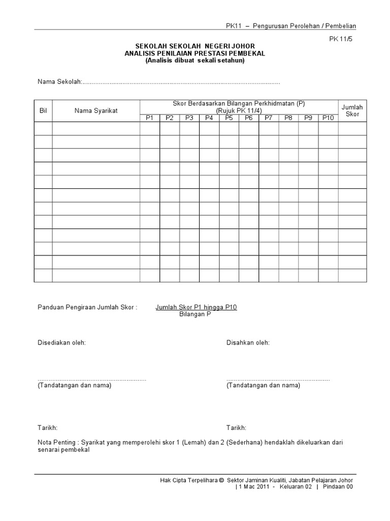 Contoh Borang Penilaian Prestasi Pembekal
