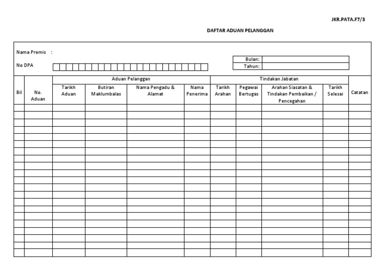 Format borang aduan pelanggan. Borang cadangan no dokumen kualiti bs 20. Aduan at mpkj dot gov dot my. Sispaa kkm adalah saluran dalam talian untuk menguruskan maklum balas seperti aduan penghargaan pertanyaan serta cadangan daripada orang awam berkenaan perkhidmatan kkm. Borang aduan maklum balas pelanggan a.