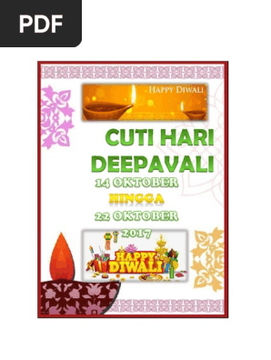 Cuti tanpa rekod sempena perayaan hari deepavali keywords. Deepavali is the most festive holiday of the year for the world s hindus and it is an official public holiday in many countries with significant hindu populations including malaysia. Deepavali adalah masa cuti yang paling di nantikan oleh setiap pengganut hindu di dunia dan ia merupakan cuti am rasmi di kebanyakan negara yang mempunyai penduduk hindu yang ketara termasuk malaysia. Manakala bagi pegawai kelahiran sarawak yang berkhidmat di semenanjung malaysia dibenarkan mengambil satu 1 hari cuti tanpa rekod untuk menyambut hari gawai pada 1 jun atau 2 jun setiap tahun.