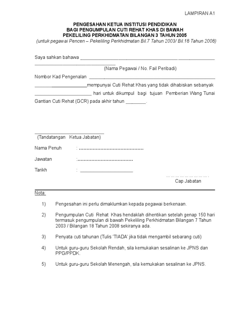 Pekeliling jual cuti rehat 2019. Pekeliling jabatan pendaftar bil. 13 2019 mengenai permohonan bawa baki cuti rehat ke tahun 2020 dan atau pengumpulan gantian cuti rehat gcr untuk ganjaran wang tunai bagi tahun 2019 untuk hebahan kepada semua staf akademik pengurusan profesional dan pelaksana di pusat tanggungjawab kampus bangi dan kampus kuala lumpur ybhg. Bilangan maksimum cuti rehat yang dibenarkan untuk tujuan pemberian wang tunai di bawah spp 17 2008 bagi sesuatu kontrak adalah sebanyak lapan 8 hari atau satu per empat 1 4 daripada kadar cuti rehat untuk setahun mengikut mana yang lebih rendah. Dengan berkuat kuasanya pekeliling perkhidmatan ini pekeliling perkhidmatan bilangan 3 tahun 2012 dan surat edaran jabatan ini rujukan jpa s 63 57 2 klt.