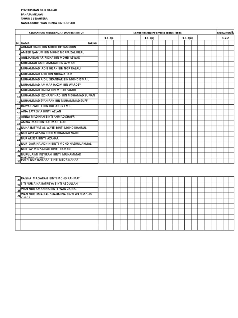 Sp bil nama murid 1 chang zi hao l 2 foo voon foong l 3 lai yu yang l 4 ling man fung l 5 wong jia heng l 6 wong jia sheng l 7 wong yue huan l 8 chan xiao qin p 9 chong qiao jing p 10 kong yi ling p 11 liew kai en p. Templat fail pelaporan pentaksiran bilik darjah pbd untuk tahun 3 2019 telah pun dikeluarkan oleh bahagian pembangunan kurikulum. Belanjawan bendera bendera malaysia ber berita beritaz kesihatan bi biro pengaduan awam blogger tips bm bnm bomba borang.